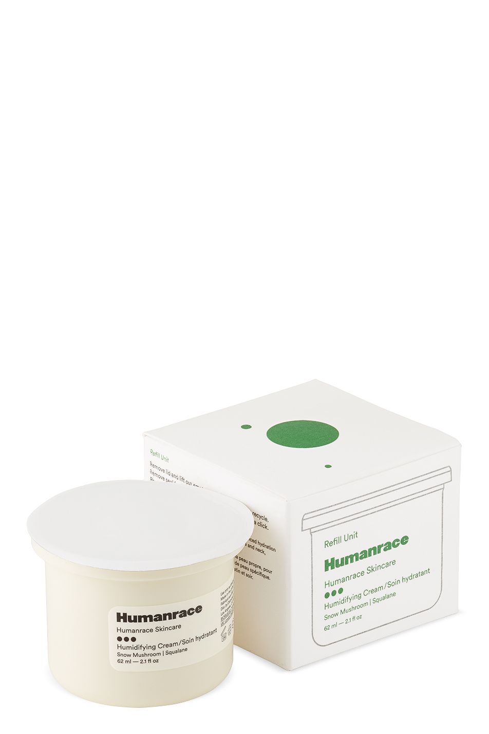 Facial cream refill for hydrating, soothing, and nourishing skin. Features snow mushroom, squalane, hyaluronic acid, and tiger leaf extract. Suitable for all skin types. Free of fragrances and gluten. Vegan and cruelty-free. Recyclable packaging.